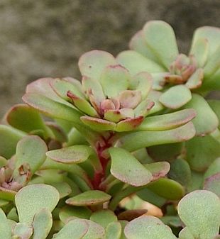 Sedum glaucophyllum je opět druh, který bývá často zaměňován a nesprávně označován jako Sedum nevii, které je poměrně vzácné a kultivace bývá spíše sbírkovou záležitostí. Sedum glaucophyllum je původem z Apalačských hor v USA, kde roste na polostinných kamenitých stráních od 500 do 1200 n.m. Je to pomalu rostoucí druh, tvořící malé, spirálovité, přisedlé růžice o průměru až 2,5cm. Bílé , čtyřčetné květy se objevují v časném létě.