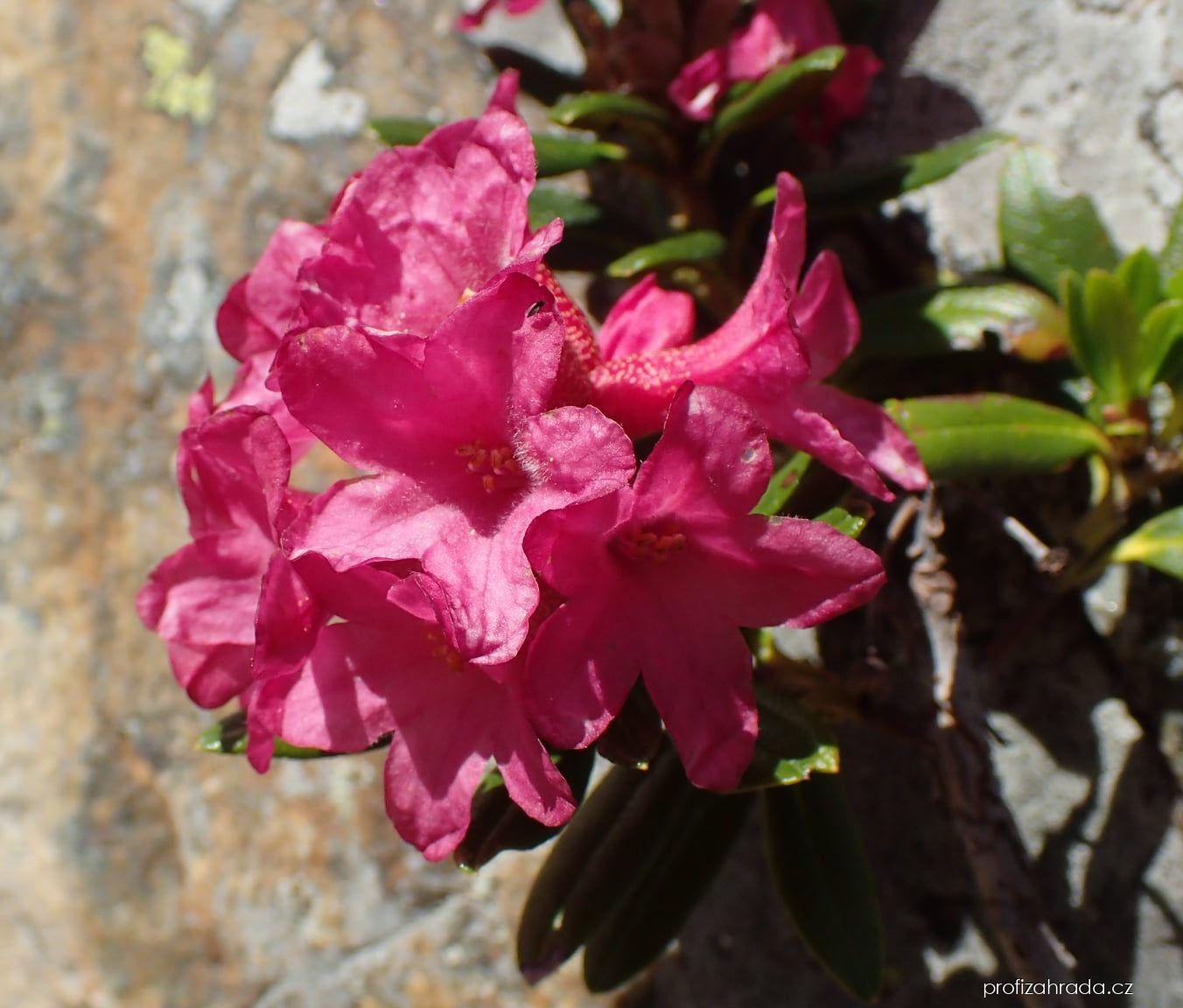 Další názvy: rododendron rezavý Čeleď: Ericaceae - vřesovcovité Barva květů: červená, Doba kvetení: květen, červen, červenec, Typ květů: počet okvětních lístků 5.