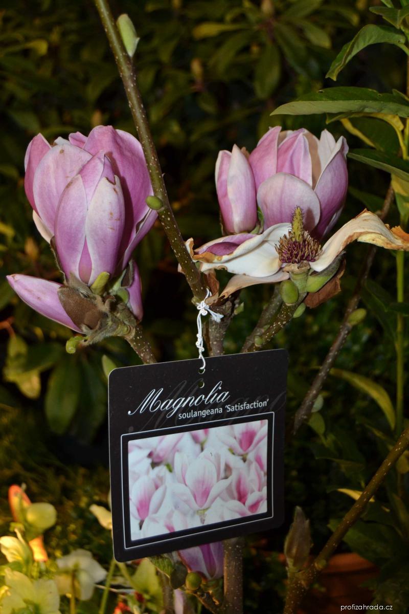 Synonyma: Magnolia conspicua var. alexandrina 'Satisfaction', Magnolia conspicua var. citriodora 'Satisfaction', Magnolia conspicua var. soulangeana 'Satisfaction', Magnolia conspicua var. speciosa 'Satisfaction', Magnolia obovata var. soulangeana 'Satisfaction', Magnolia yulan var. soulangeana 'Satisfaction', Magnolia x brozzonii 'Satisfaction',