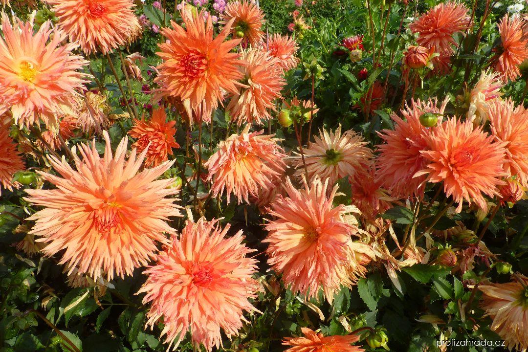 Dahlia 'Mevr. Clement Andreas' - jiřinajiřinkaCibulovina, hlíznatá r., listy vstřícné, lichozpeřené, květenství úbor, plody nažky, rychle rostoucí, záhonová rostlina, nápadné květy, k řezu. | ![]() 1.30 m | ||