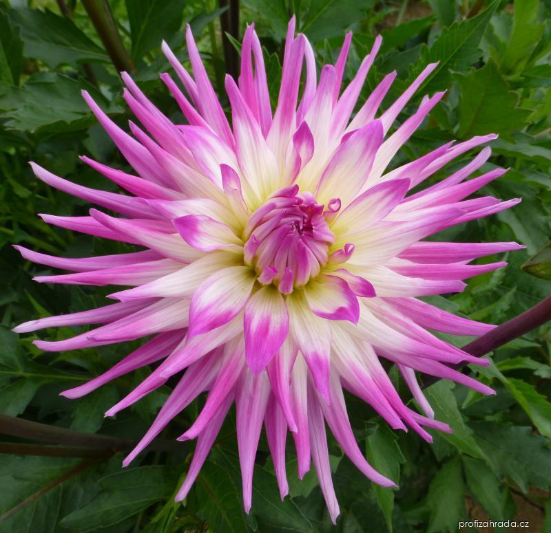 Dahlia 'Darina'; Čeleď: Asteraceae - hvězdnicovité Barva květů: světle fialová, (světle purpurová) Kaktusovitá jiřinka, výška rostliny 150 cm, šířka 100cm, průměr úboru 16 cm, vynikající k řezu. Zdroj: VÚKOZ Průhonice Místo: Dendrologická zahrada Průhonice