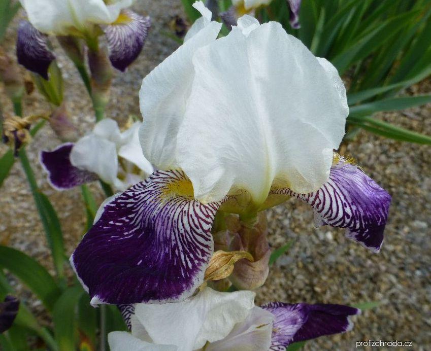 Kosatec 'Toelleturm' - IrisIris 'Toelleturm'; Čeleď: Iridaceae - kosatcovité Barva květů: bílá, fialová, Doba kvetení: květen, červen, Typ květů: květy ostatní, Šlechtitel: George Arends, 1930 Skupina: Vysoké kosatce - Iris barbata elatior hort. Místo: Botanická zahrada Chotobuz |