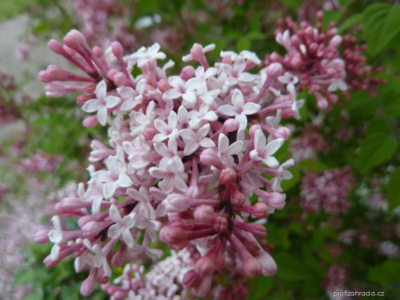 Šeřík Meyerův 'Palibin' - Syringa meyeriSyringa meyeri 'Palibin'; Synonyma: Syringa microphylla 'Minor', Syringa palibiniana, Syringa patula hort., Syringa velutina hort. Čeleď: Oleaceae - olivovité Barva květů: světle růžová, Typ květů: počet okvětních lístků 4, Místo: Botanická zahrada Praha Troja | |